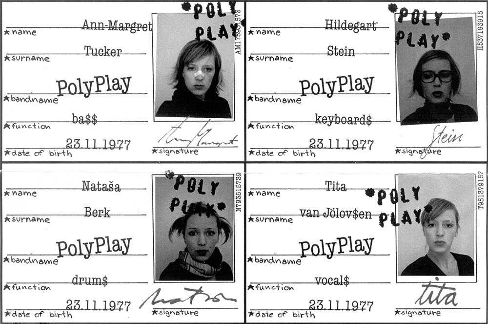The band PolyPlay is an art project by Nata_a Berk and Hildegart Stein. Miss Stein is an amateur piano player, she’s quite good. Natasa is a perfect rhythm maker and they both always wanted to play in a band. Because no one let them play in their bands, they became four.