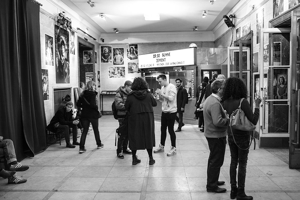 Necati Öziri: Studio Я functions institutionally in a different way. It’s kind of like a small theater within a theater, so to speak, although it shares the infrastructure, rehearsal rooms, technology and so on, and of course there are also personnel overlaps. But still, Studio Я is its own entity—with its own programming, its own curators, and no permanent ensemble. It has external funding, so in principle it is an off-scene stage that applies for projects and binds artists from Berlin’s off-scene to the house. There’s a lot of discourse, lots of concerts, music, and a thousand small experimental intermediate formats. For instance, we have a format called Theater ist endlich ist Theater. Over 24 hours, people come together—directors, writers, audiences, and actors. At midnight the writers begin writing until 8 AM. Then the directors rehearse from 8 AM to 8 PM. Then all the premieres follow one after the other. And so there is a space down there that stands for something politically and has a programmatic profile.