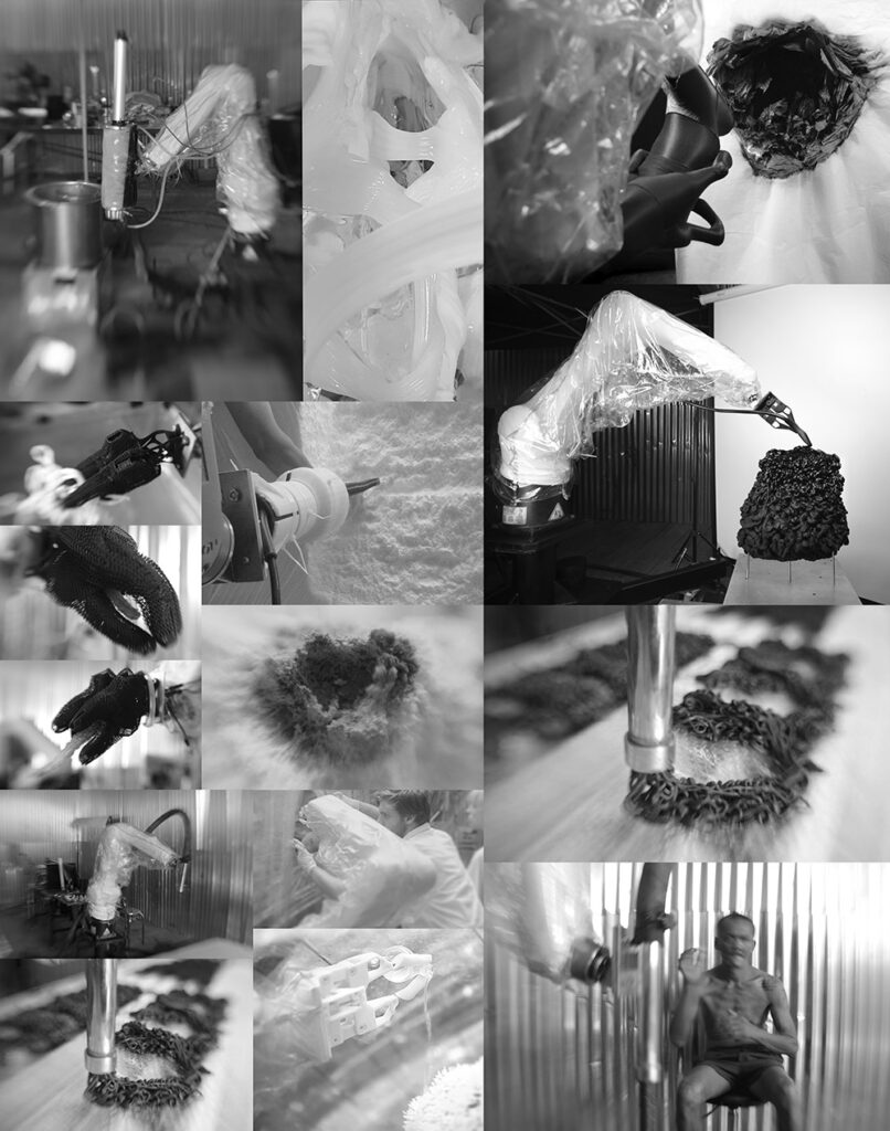 These rules of predictable “ANCIENT REGIM” world, in the sense of the division of labor, delegation of power and concentration of data bases, needs to mask their powerlessness, their impotency, through this managerial debate, fake conflict and disputatious storytelling / the computer geek vs. the political clown… defining niches and territories from where they could operate, both of them spreading ‘’the traditional and compliant speech of the masters.’’ We are in the midst of a paradigm shift, to quote Thomas Kuhn, between two inherently incommensurable systems. The old system that uses technology to reproduce and perpetuate top-down processes (which they falsely claim to oppose)… and a new system that needs to discover its potential, its limits, constraints, intrinsic logic… to re-negotiate the scenario of thinking and doing… “””but””” architecture… the means and the meaning, rearticulating “le vivre ensemble” and the “common good”… for protocols more disruptive than linear, more heuristic than deterministic, more anthropo-technological (Sloterdijk) than purely dedicated to accuracy, performativity, expertise, now analyzed as one symptom of the copy-based syndrome… Digital Disobedience can be described as an alternative frame of thinking about the application of novel tools in our contemporary discourse. Architecture as a discipline is on the verge of a decisive moment: automation and artificial intelligence will bring more change to the entire practice than even the revolutionary introduction of computational tools did in the last quarter of a century. This brings along an entire set of questions, which Digital Disobedience attempts to ask. The answer is not the main issue here, rather the set of opportunities presented in the critical interrogation of our current, and future relationships to novel ecologies emerging in society, economy and technology. How will we, as architects, respond to this rapidly progressing change? Is being docile, in expectance of the best a sufficient position to maintain? The collective of architects on display here refuse to be usurped by a neoliberalist position on computational design and architecture and rather support an idea that fosters a speculative approach to the future. A position that embraces change triggered by technological progress in the methods of materializing architectural entities. A future in which robots and human form novel modes of machines infused with aspects of morality and inquisitive intelligence. A post-capitalist future that embraces the radical change in our social texture triggered by the possibilities of a world governed by deterritorialized entities in which we expand, repurpose or accelerate aspect of our culture and technology for the benefit of our world at large.