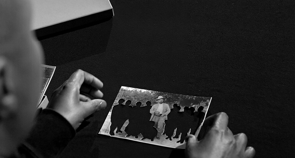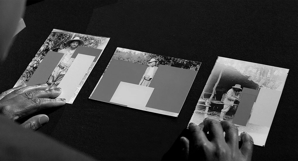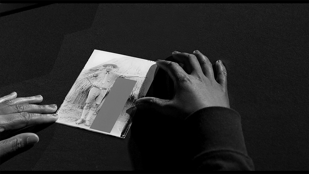 The idea for Unearthing. In Conversation emerged from an encounter with photographs taken by Austrian-Czech ethnologist and missionary Paul Schebesta (1887–1967) in what is now the Democratic Republic of the Congo during the 20th century. Initially conceptualized as a ten-minute live performance, the work later developed into the video discussed here.1 It was first shown as part of the exhibition Hauntopia / What If at the Research Pavilion in Venice.2