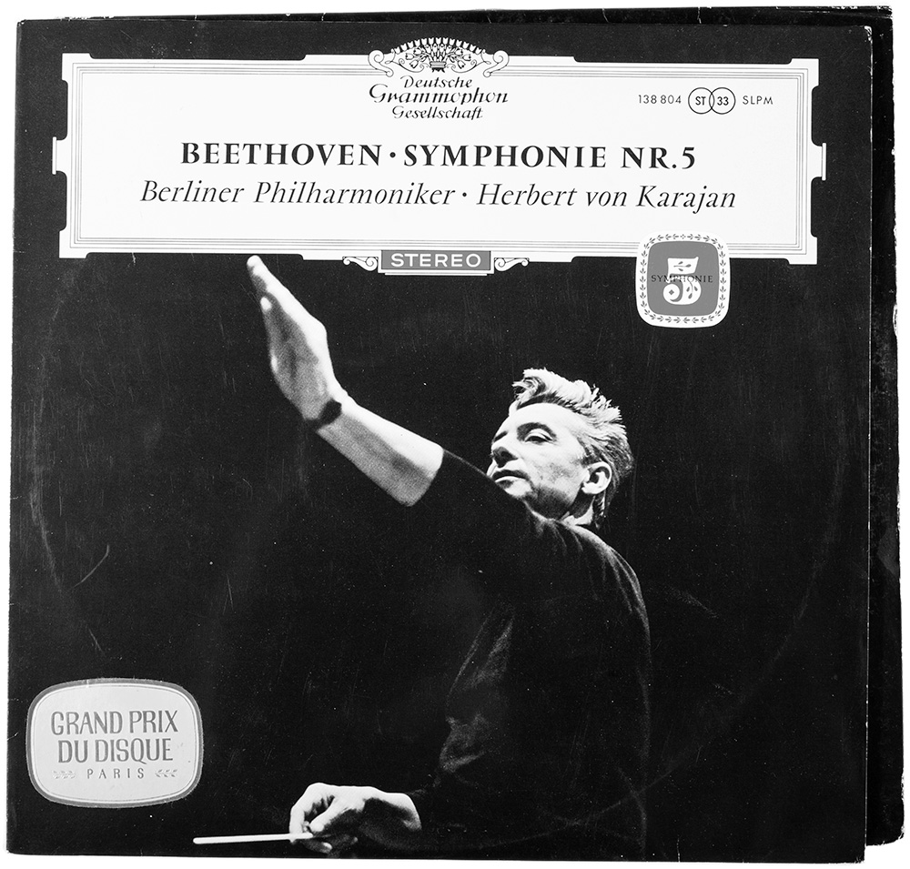 Her skepticism wasn’t really rooted in aesthetics. She was a bit contaminated by today’s globalized world culture. She wanted something she had heard about in the media, but also something reassuring, something that would make her feel „secure,“ at home. I then suggested a recording by Wilhelm Furtwängler. She didn’t want that either: too old, too historical, too outdated. Then I suggested Karajan—the legendary 1961/1963 Deutsche Grammophon cycle. „Yes, Karajan, very good!“ she exclaimed enthusiastically. „Perfect!“ And then, jokingly, I pointed to the cover photo and added, „With the delightful Hitler salute to go with it!“ (Karajan’s elevated conducting gesture in the cover photo—taken from below!— inevitably reminds of the Hitler salute). Instead of laughing or reconsidering whether it was such a great choice after all, she was shocked, frozen, as if she had been electrocuted. The CD, which she had just embraced with such spontaneous enthusiasm, she suddenly wanted nothing to do with and quickly placed it back on the shelf. „Oh no! That won’t do, not at all!“ She refused to touch it again. She nearly crossed herself.