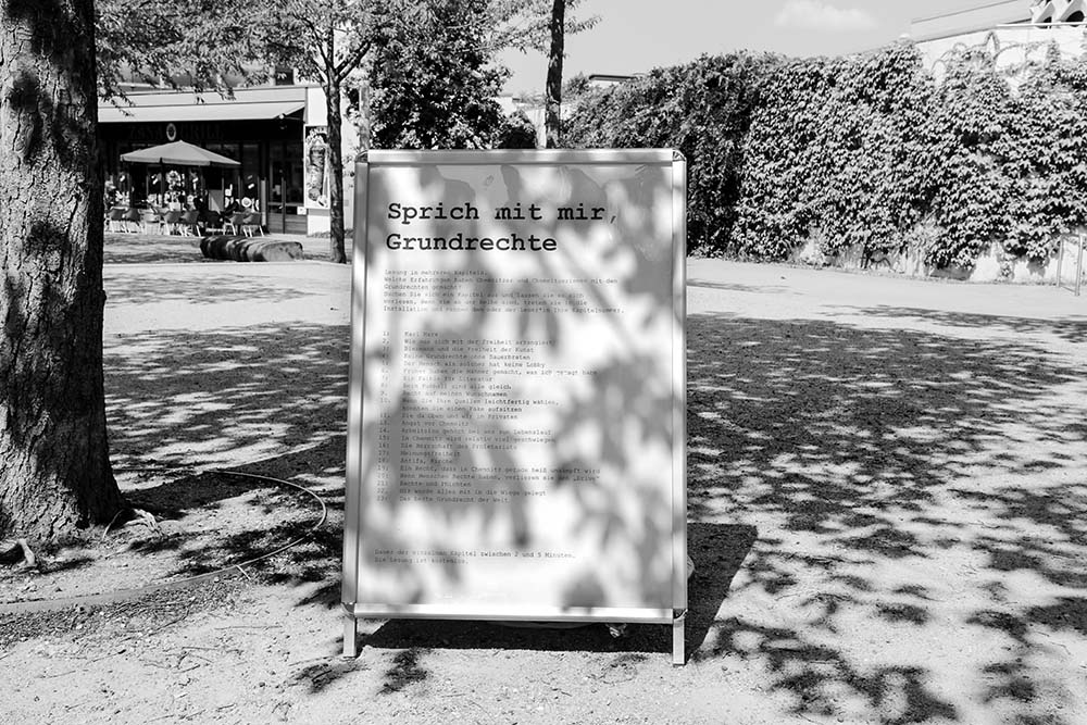 For the Sprich mit mir, Grundrechte project, Anna Witt held conversations with around 50 people from Chemnitz about their personal experiences regarding their rights. The fundamental rights were written down in the German Fundamental Law in 1949. They were created in response to the two World Wars and the immeasurable atrocities of the Nazi regime. The fundamental rights were also enshrined in the constitution of the former GDR (East Germany). Particularly older residents of Chemnitz have experienced what it’s like to live under different forms of government. Their experiences with their fundamental rights at that time, as well as their current views on their rights, are part of the project, as are the experiences of people with various socio-economic, political, and cultural backgrounds.