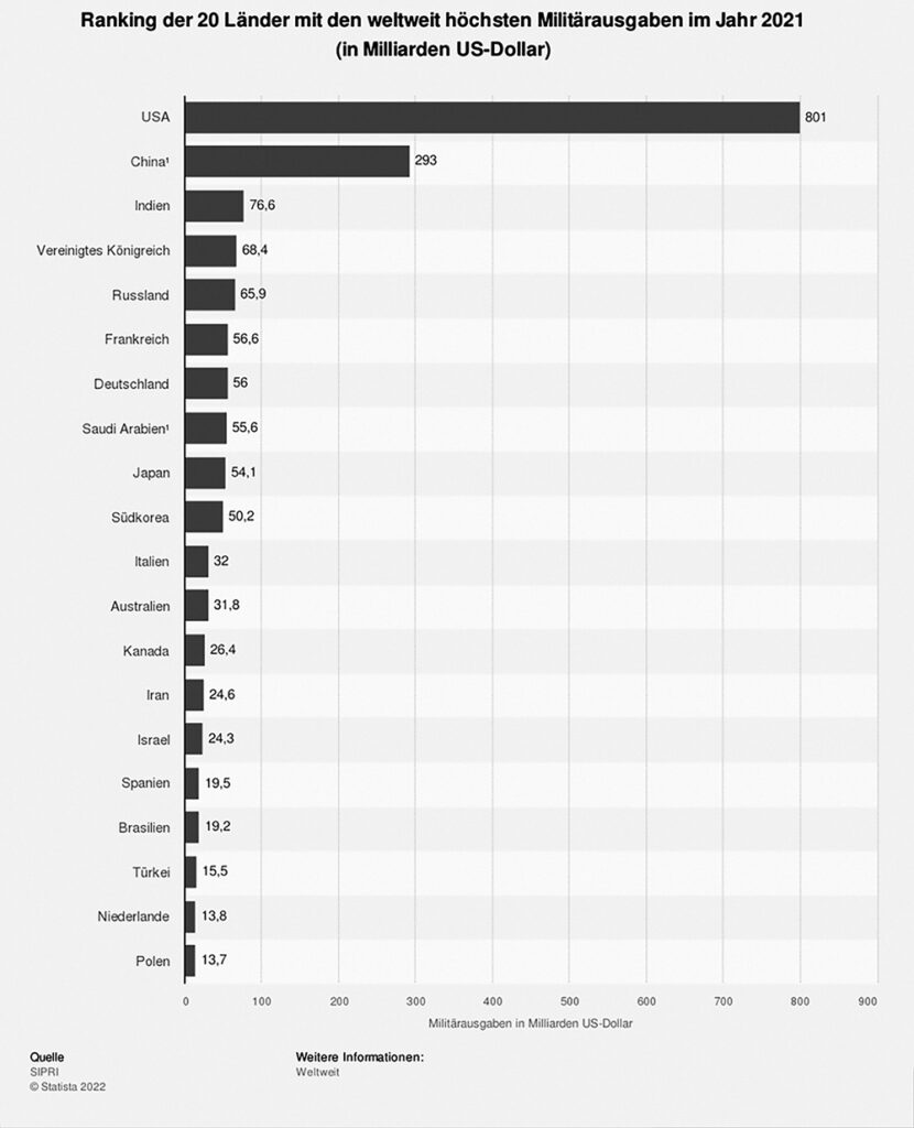 Chomsky: Well, there‘s an interesting situation developing in the Western European countries, Sweden, Finland, Germany, and others. On the one hand, they are gloating over the fact that the Russian military, who was demonstrated to be a paper tiger, couldn‘t even conquer cities a couple of kilometers from the border, defended by a mostly citizen‘s army. So, all the talk about Russian military power was exposed as empty and they are all now gloating about this, how wonderful it is. That is one idea. The second idea is that we have to be so terrified of the paper tiger that we have to vastly increase military spending. Germany alone will, under current projections, probably spend as much as Russia does on military spending and it is a far more advanced society, of course. That is Germany alone, not the rest of NATO and not of course the United States, which overwhelms everyone by a huge margin in military power.